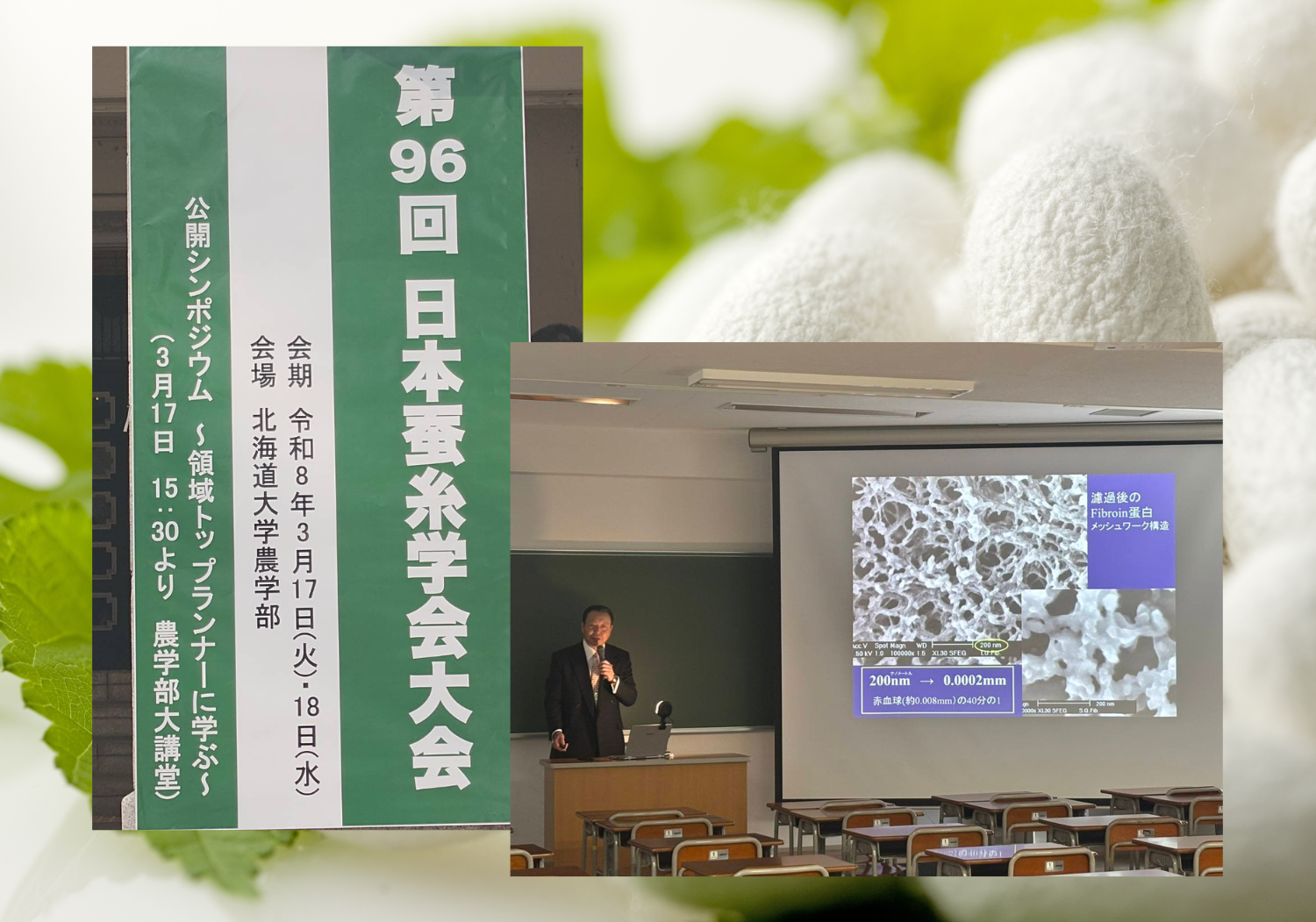 また、当日は絹由来の注目素材「シルクフィブロイン」をテーマとした企業プレゼンテーションも実施し、健康科学分野における可能性についてご紹介させていただきました。